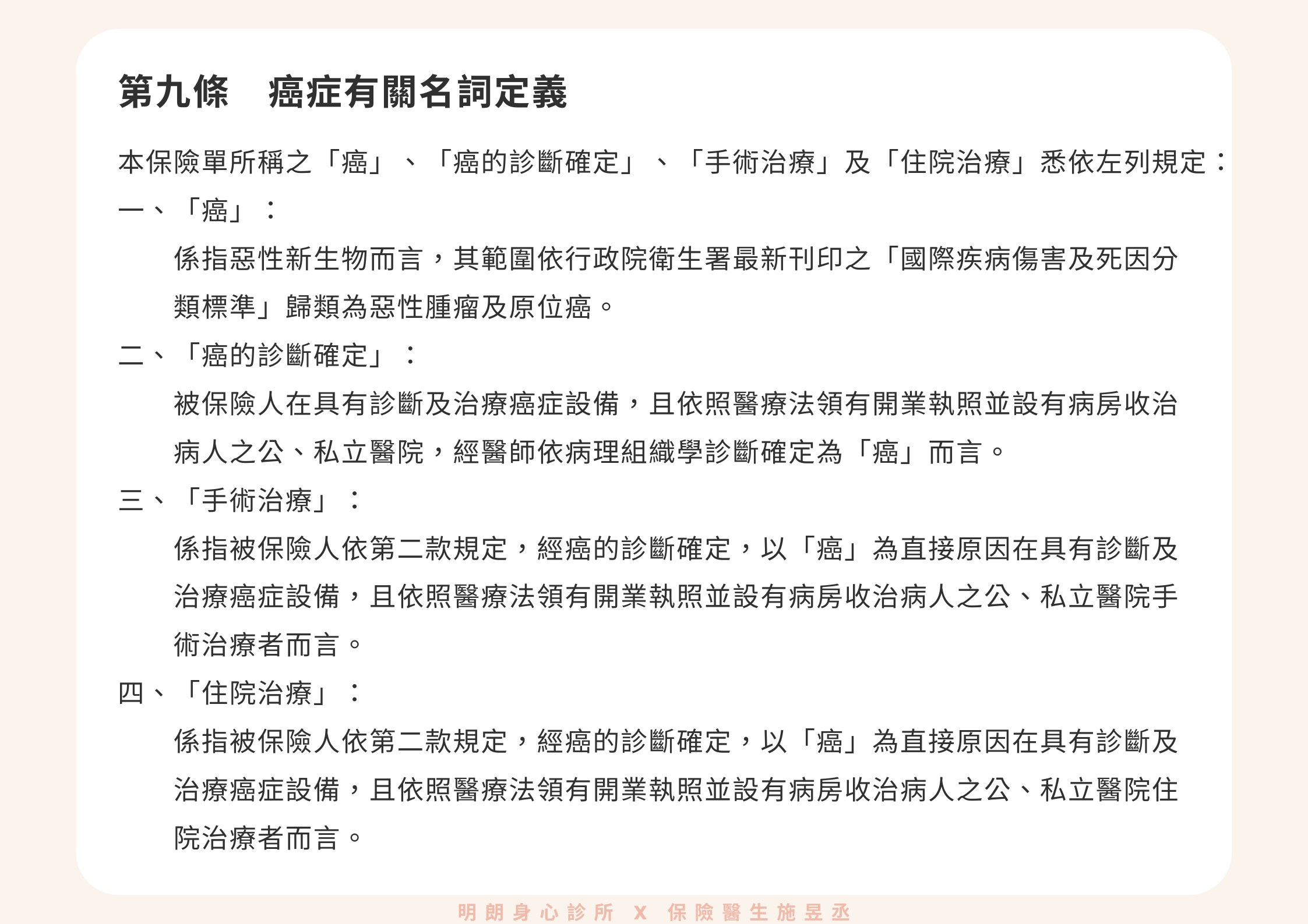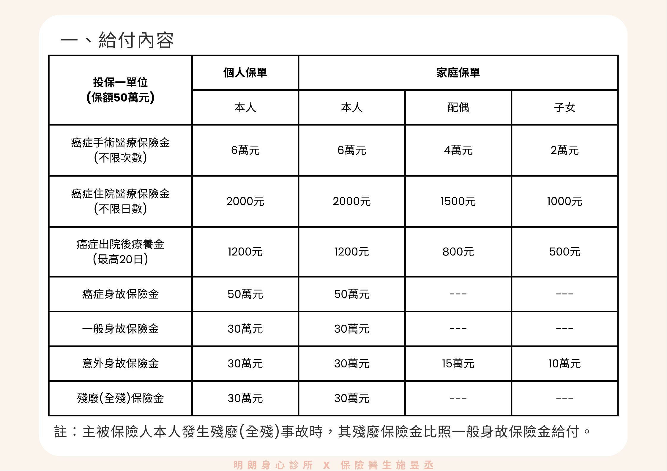 - 癌症身故保險金