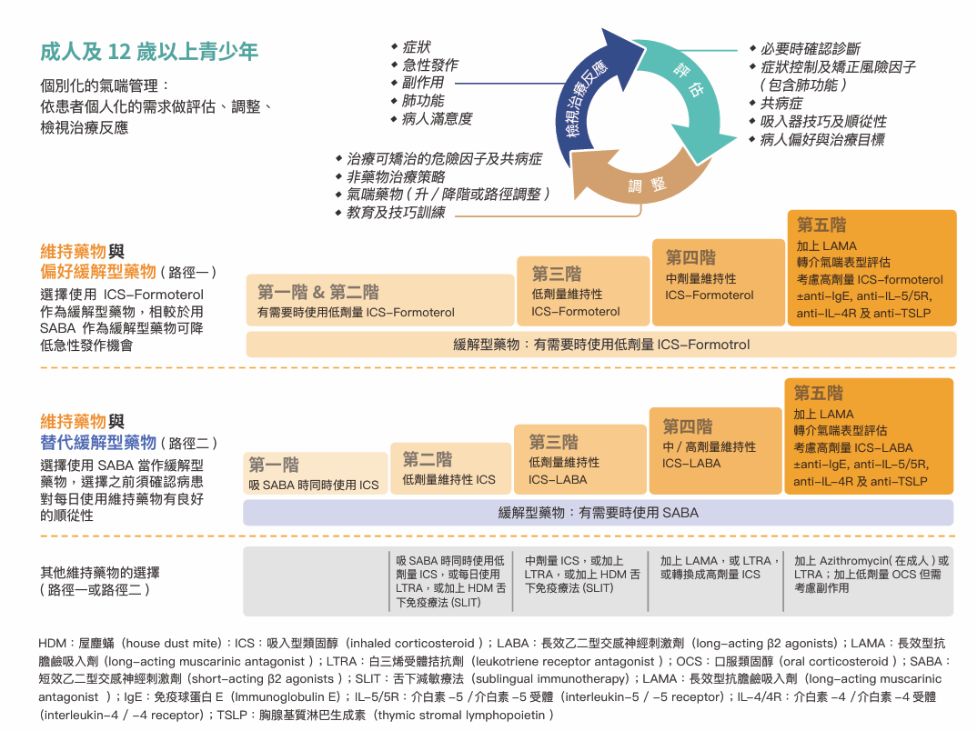 - 輕微氣喘:指第一階或第二階治療後,可控制良好的氣喘
