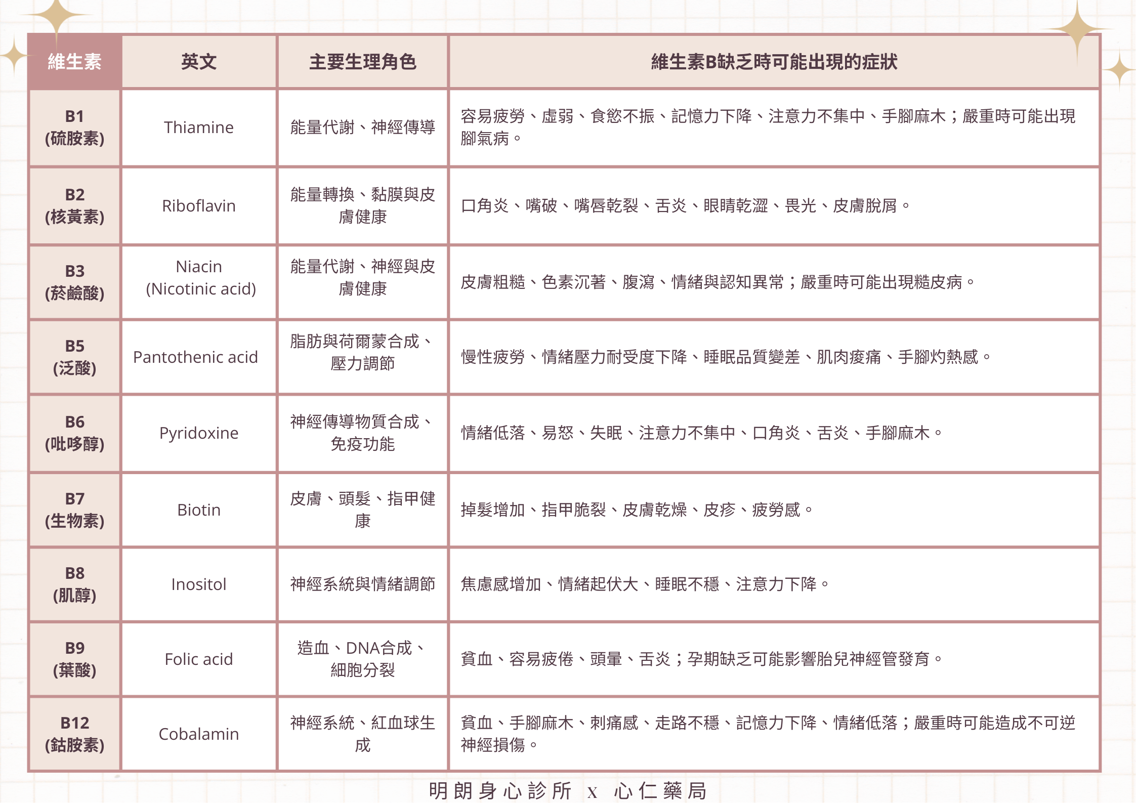 - 代謝/減重:B1、B2、生物素。