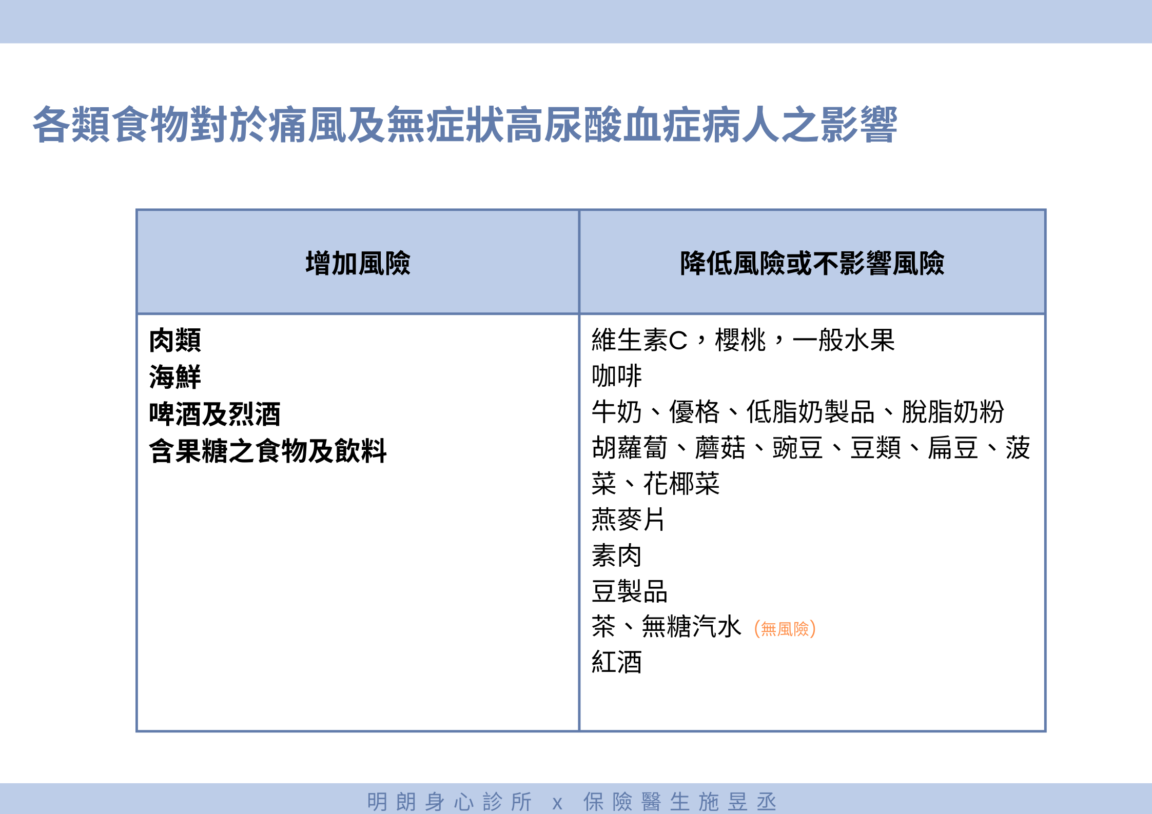 不論是投保壽險或是健康險,都會詢問:「過去一年內是否曾因患有下列疾病而接受醫師治療、診療或用藥?」→痛風