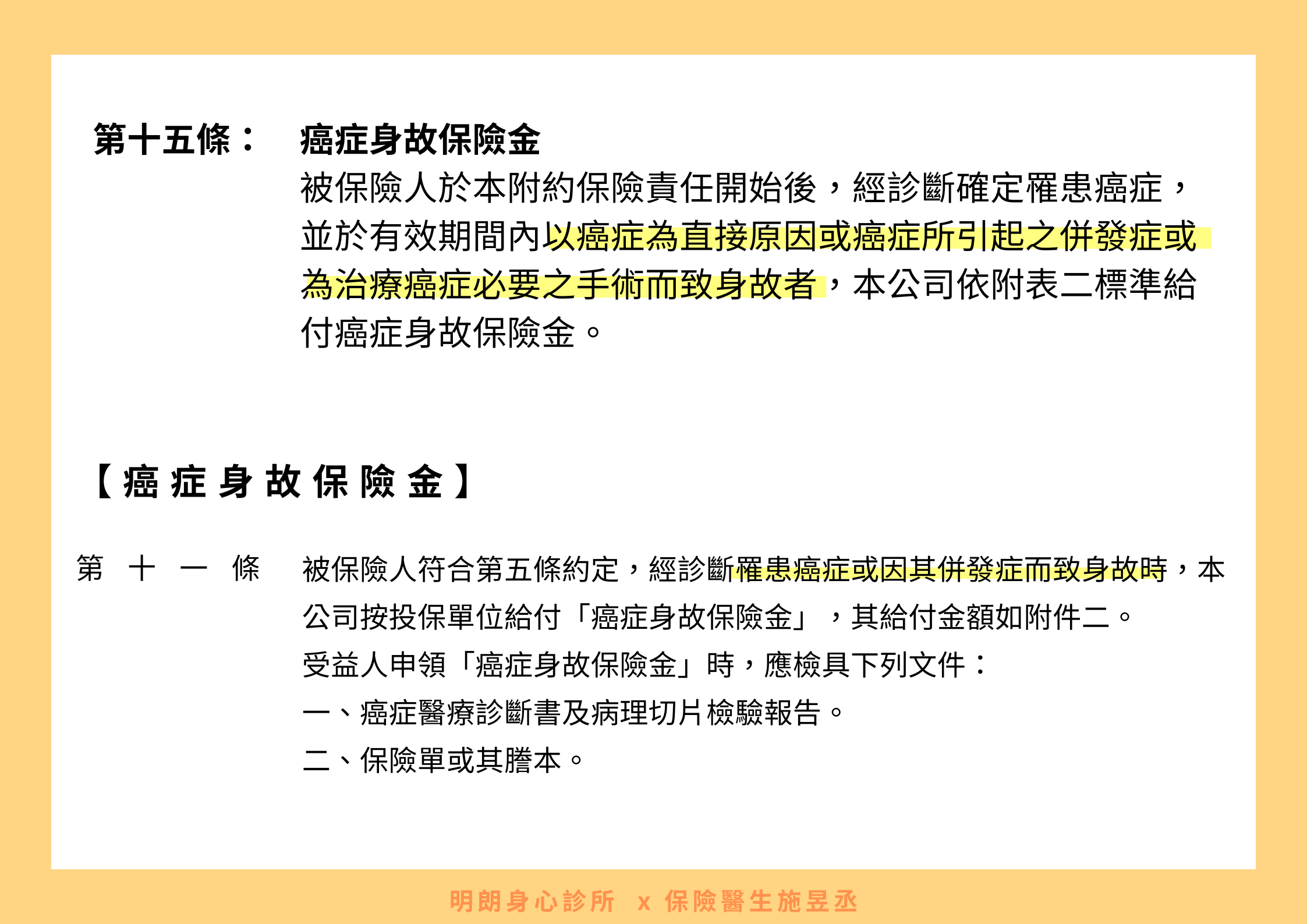 可以看到對於癌症身故的認定,至少有兩種: