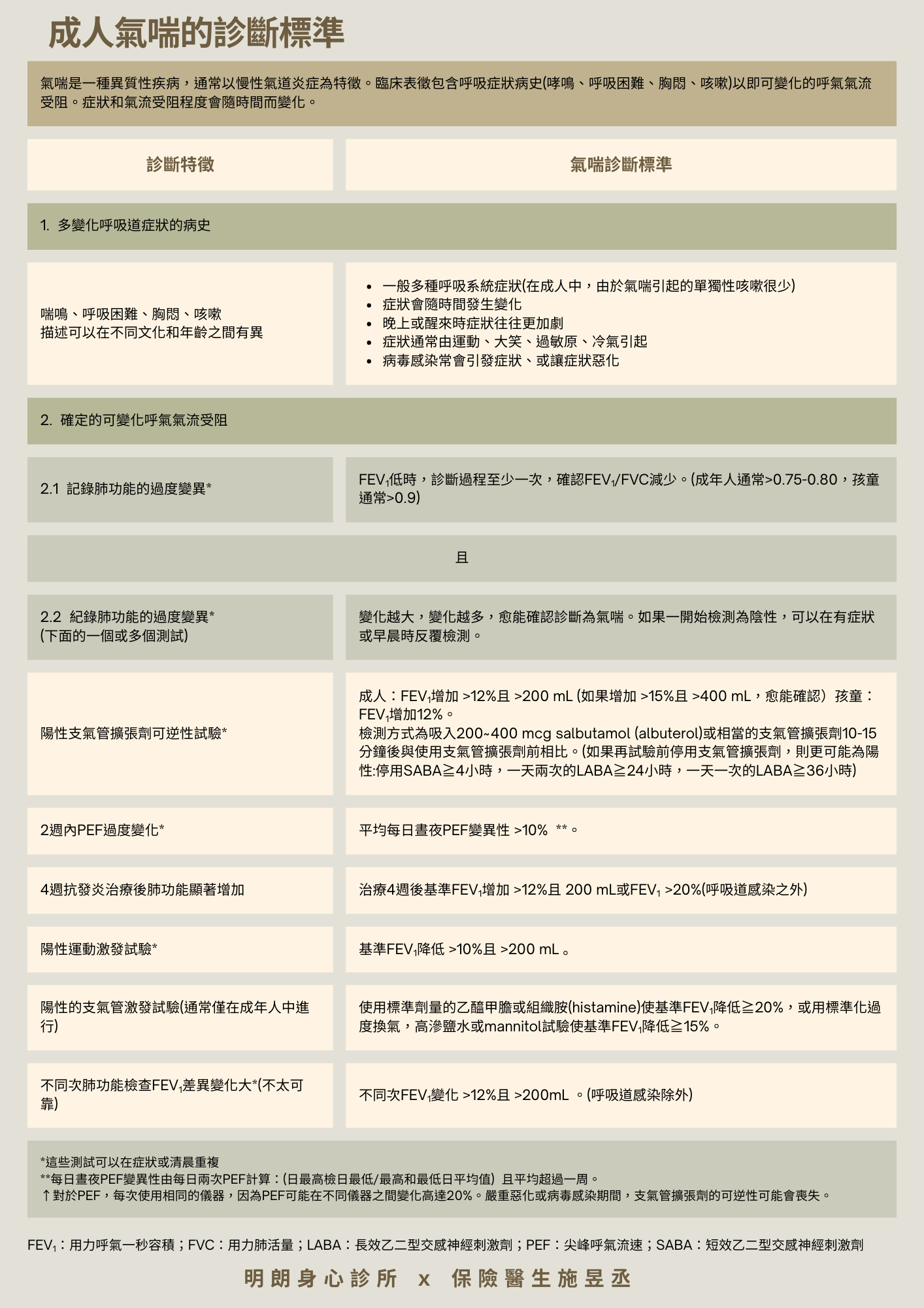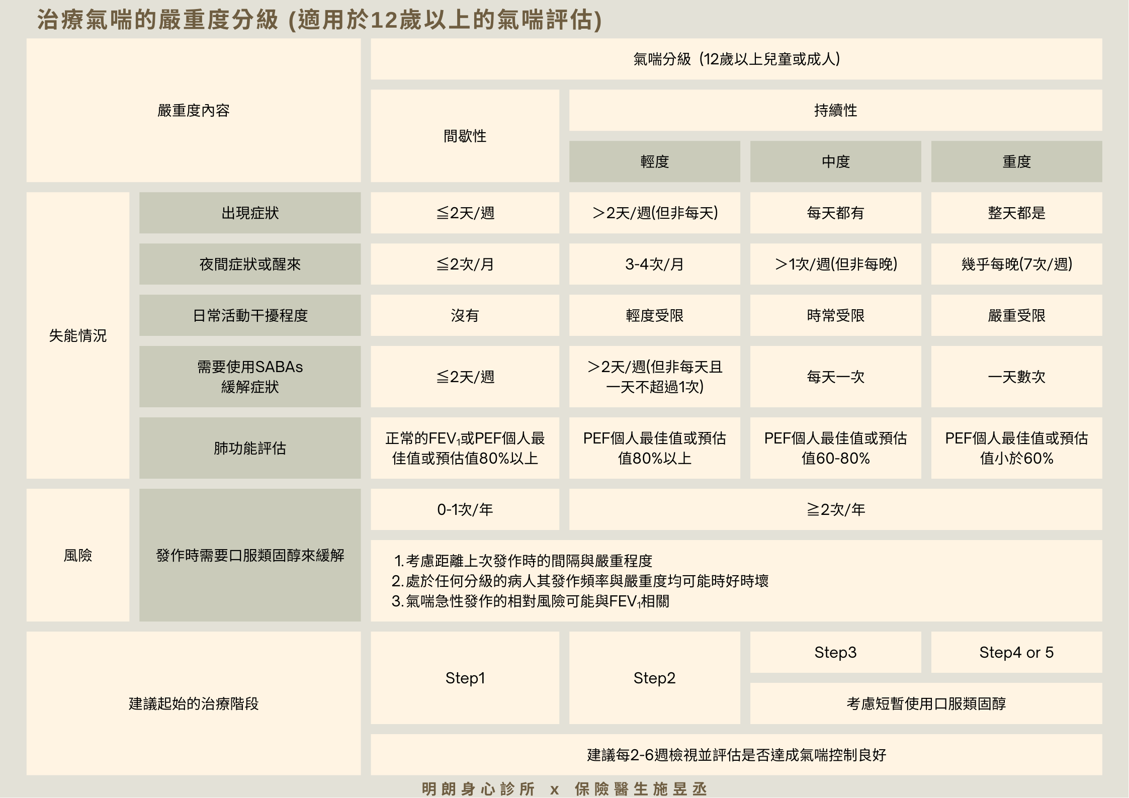 - 輕微氣喘:指第一階或第二階治療後,可控制良好的氣喘