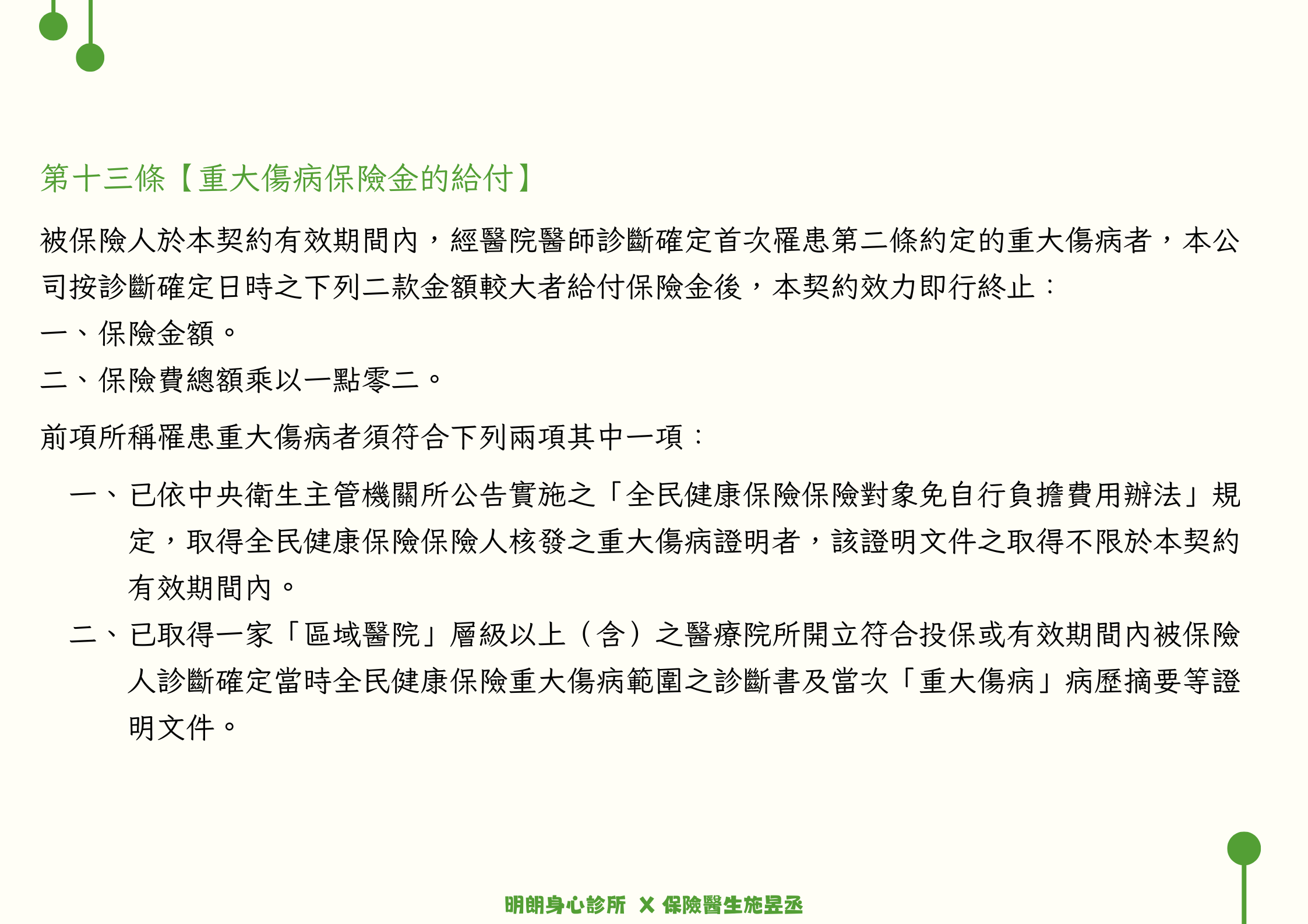Introduction of (NHI) Major Illness Insurance【保險醫生-施昱丞 Dr. Insurance / 著】