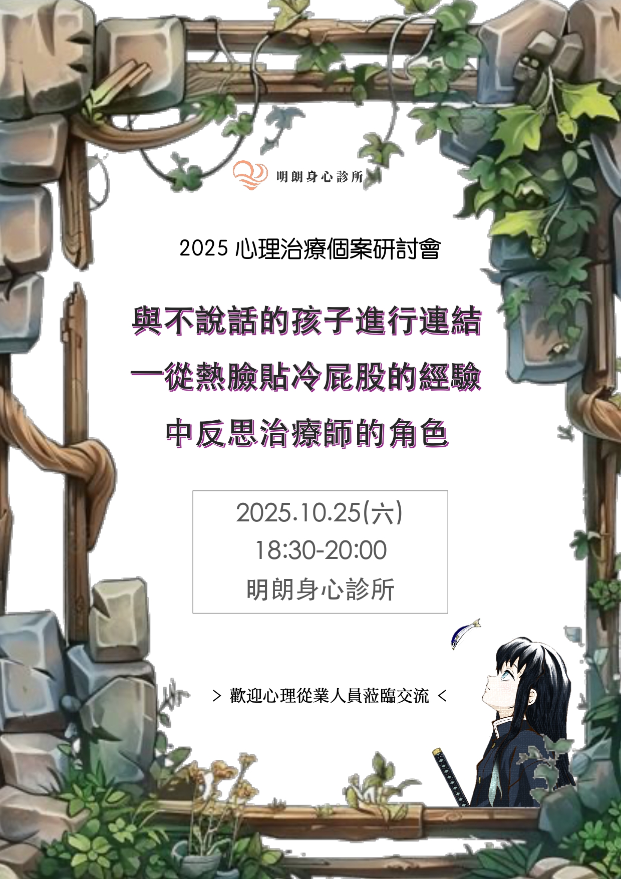 明朗身心診所將於10/25(六),18:30~20:00再次舉辦心理治療個案研討會,
