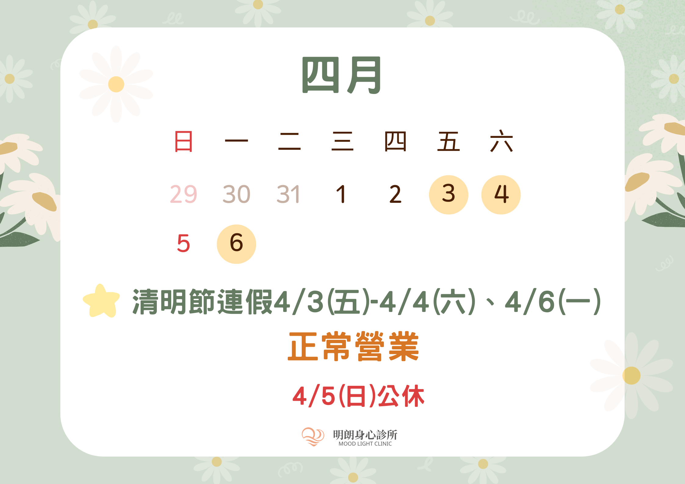 【清明節連假營業公告】